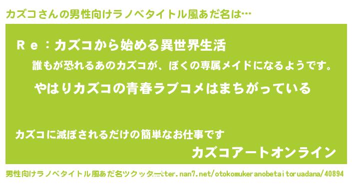 | 女子向けラノベタイトル風あだ名 | 『カズコの雑貨屋さん』 |