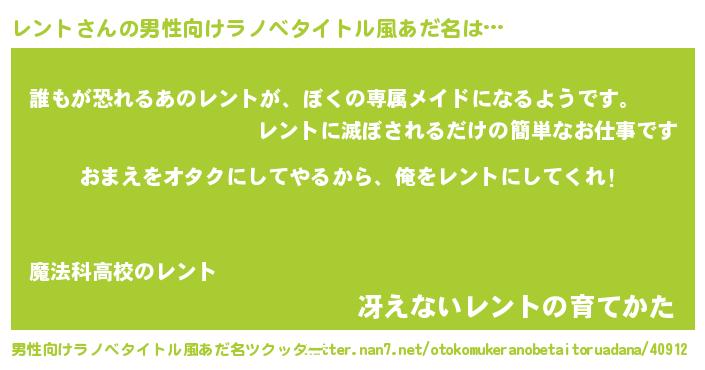 | 女子向けラノベタイトル風あだ名 | 『レント夫妻のなれそめ』 |