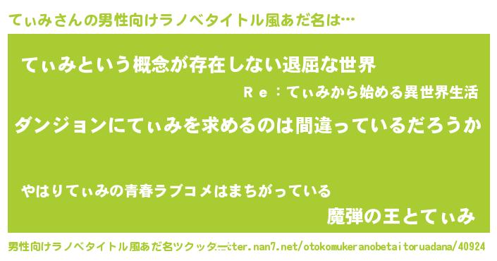 | 女子向けラノベタイトル風あだ名 | 『てぃみは平凡を望む』『闇のてぃみ』 |