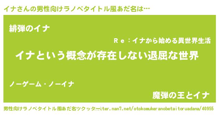 | 女子向けラノベタイトル風あだ名 | 『イナの契約王妃』『闇のイナ』 |