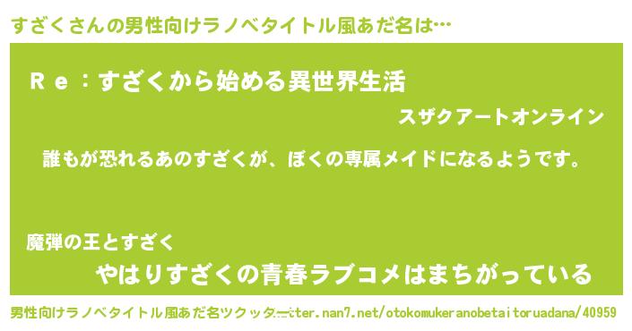 | 意味不明あだ名 | 『永久保存すざく』『自称すざく』 |