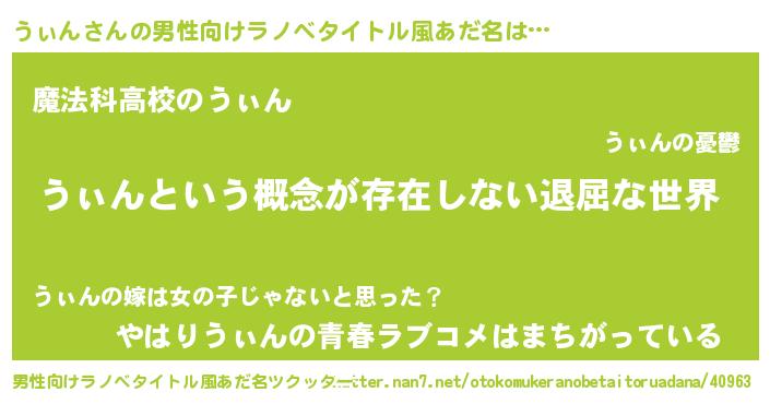 | 女子向けラノベタイトル風あだ名 | 『異世界で失敗しない100のうぃん』 |