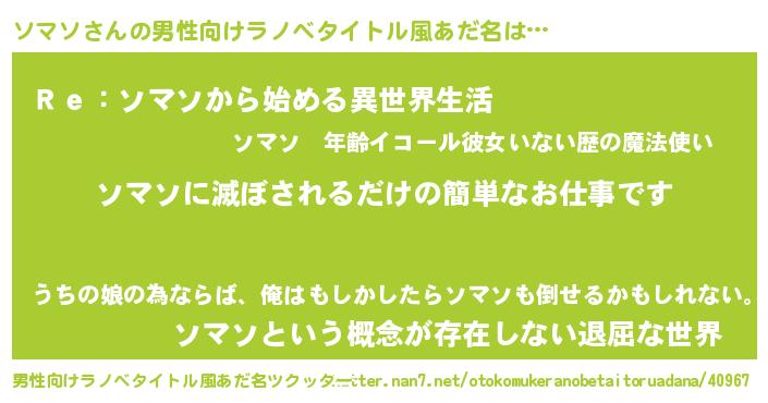 | 意味不明あだ名 | 『自称ソマソ』『永久保存ソマソ』 |