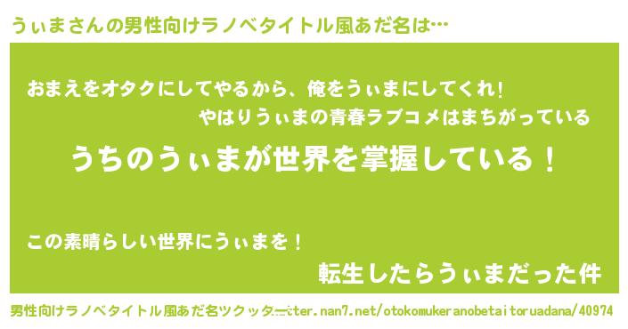 | 胡散臭い通販商品みたいなあだ名 | 『モンドセレクションを受賞した隕石のかけら…その名も「うぃま」』 |