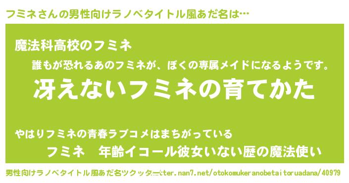 | 意味不明あだ名 | 『自称フミネ』『めかぶ科フミネ属』 |