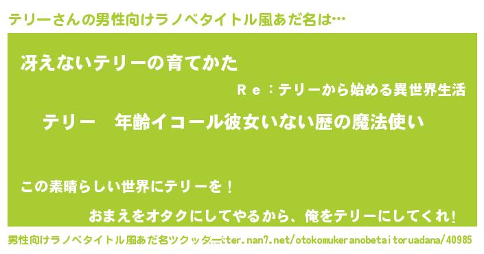 | ヒーロー風カッコイイあだ名 | 『慈愛の使者テリー』『仮面テリダー』 |