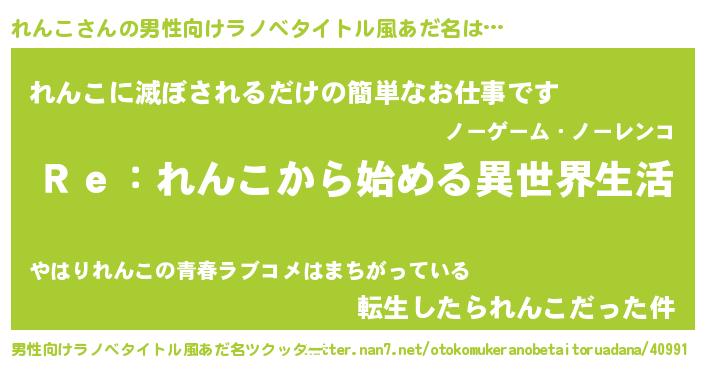| ヒーロー風カッコイイあだ名 | 『究極戦士レンコ』『慈愛の使者れんこ』 |