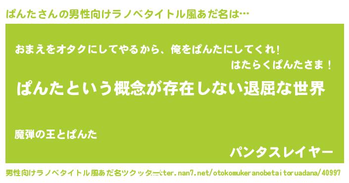 | 女子向けラノベタイトル風あだ名 | 『ぱんたの契約王妃』『ぱんた恋絵巻』 |