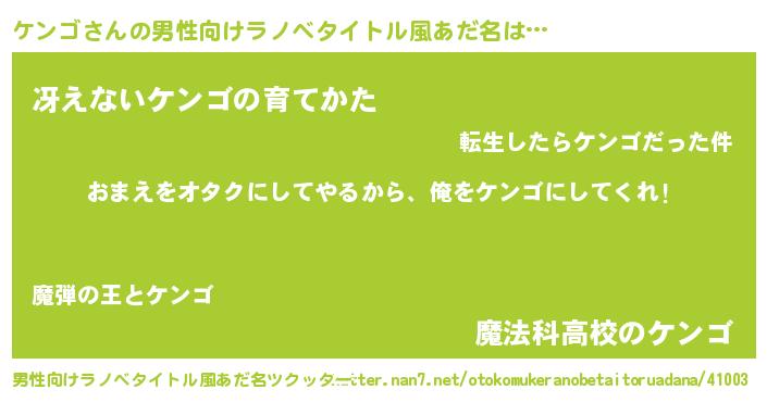 | ヒーロー風カッコイイあだ名 | 『正義の使者ケンゴ』『究極戦士ケンゴ』 |