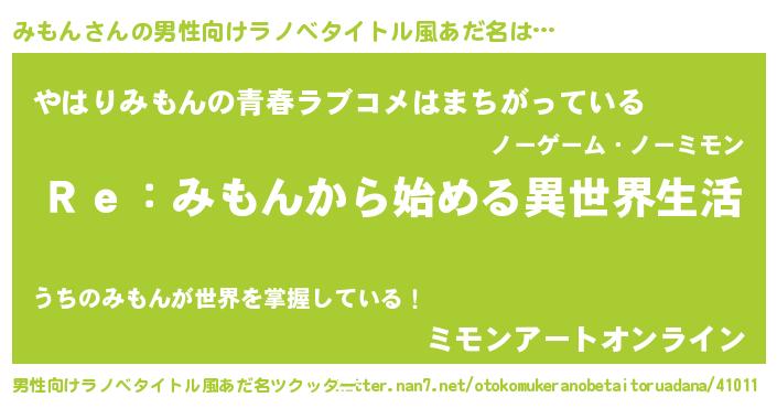 | 意味不明あだ名 | 『自称みもん』『みもんフォーエバー』 |
