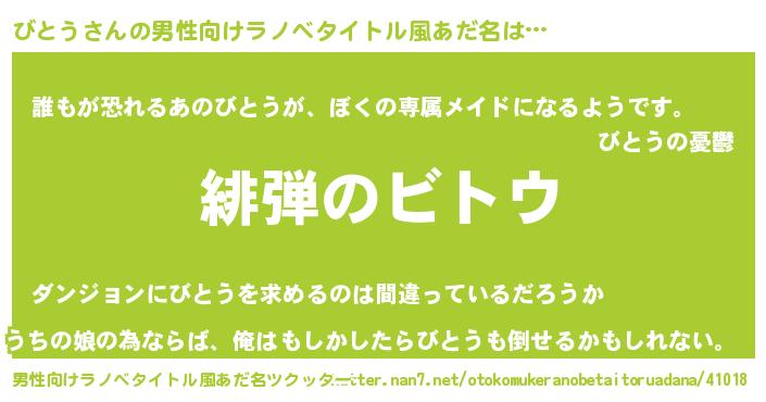 | ヒーロー風カッコイイあだ名 | 『ネオビトウ』『ウルトラびとうマン』 |