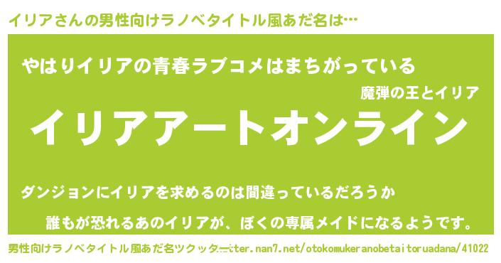 | 胡散臭い通販商品みたいなあだ名 | 『億万長者になれる霊験あらたかなお札…その名も「イリア」』 |
