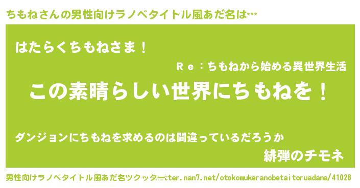 | 意味不明あだ名 | 『住所不定無職ちもね(6歳)』『自称ちもね』 |