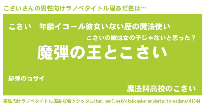 | 意味不明あだ名 | 『住所不定無職こさい(10歳)』『自称こさい』 |