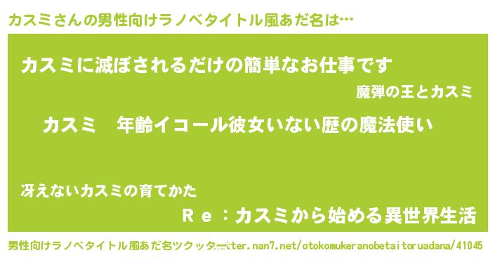 | ヒーロー風カッコイイあだ名 | 『最強戦士カスミ』『仮面カスダー』 |