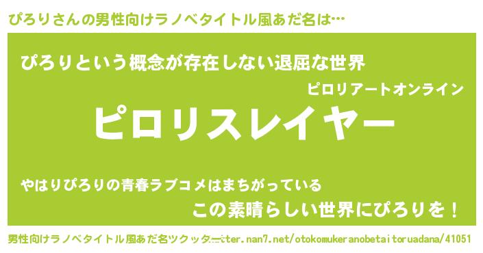 意味不明あだ名 | 『めかぶ科ぴろり属』『永久保存ぴろり』 |