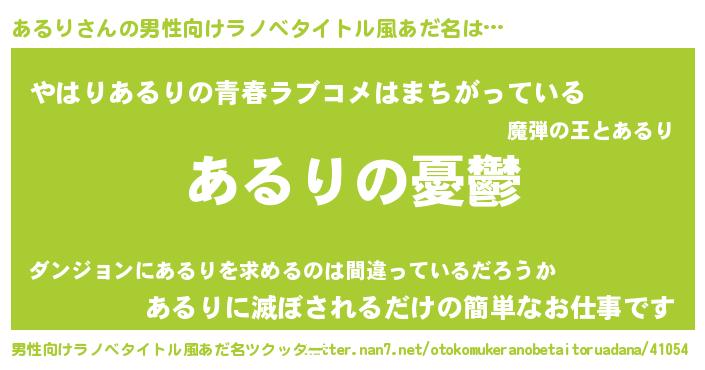 | 胡散臭い通販商品みたいなあだ名 | 『モテモテ間違いなし霊験あらたかなお札…その名も「あるり」』 |
