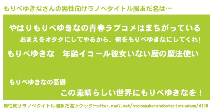 | 女子向けラノベタイトル風あだ名 | 『もりべゆきなの玉の輿計画!』 |
