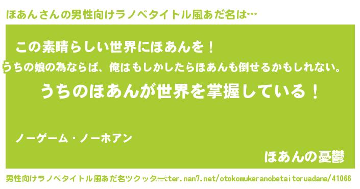ほあんさんの男性向けラノベタイトル風あだ名をツクッター!