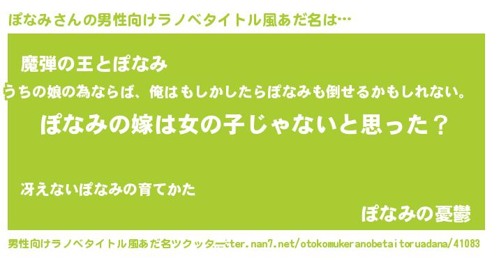 | 女子向けラノベタイトル風あだ名 | 『ぽなみ様がみてる』『ぽなみの婚約者』 |
