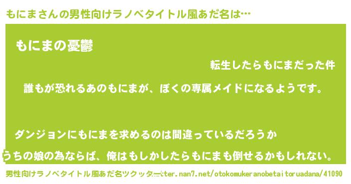 | 意味不明あだ名 | 『永久保存もにま』『ペロリンもにま』 |