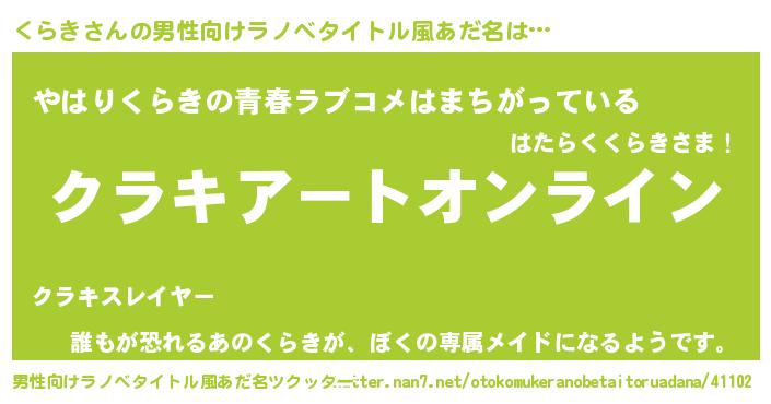 | 胡散臭い通販商品みたいなあだ名 | 『モテモテ間違いなしブレスレット…その名も「くらき」』 |