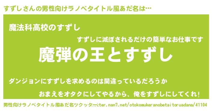 | 意味不明あだ名 | 『住所不定無職すずし(2歳)』『自称すずし』 |