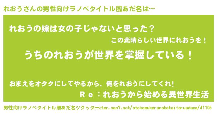 れおうさんの男性向けラノベタイトル風あだ名をツクッター!