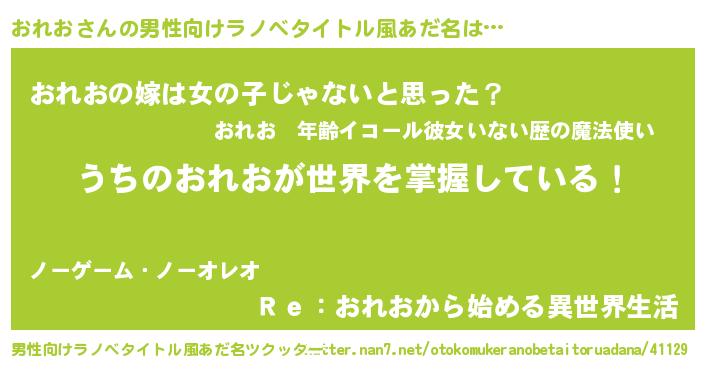 | 女子向けラノベタイトル風あだ名 | 『男装おれおの憂鬱な任務』『闇のおれお』 |
