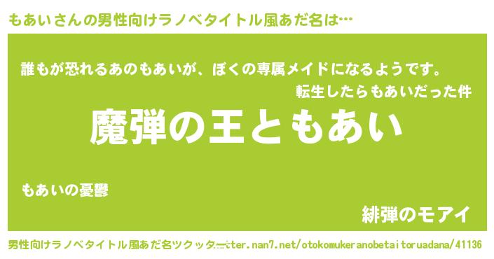 | ヘコむあだ名 | 『もあい(震え声)』『もあにー』 |
