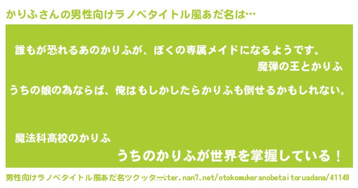 | 女子向けラノベタイトル風あだ名 | 『かりふの婚約者』『かりふアンティーク』 |