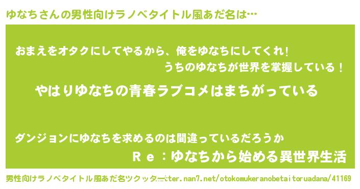 | 女子向けラノベタイトル風あだ名 | 『ゆなちの雑貨屋さん』 |