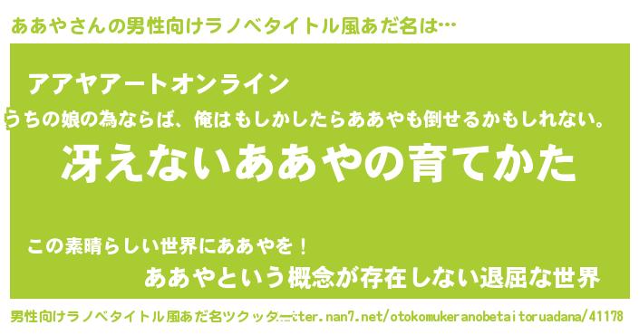| 女子向けラノベタイトル風あだ名 | 『シンデレラああや家の靴箱館』 |