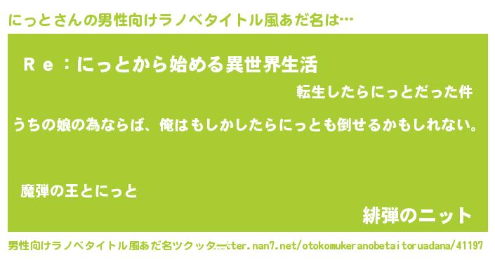 | 意味不明あだ名 | 『にっとフォーエバー』『自称にっと』 |