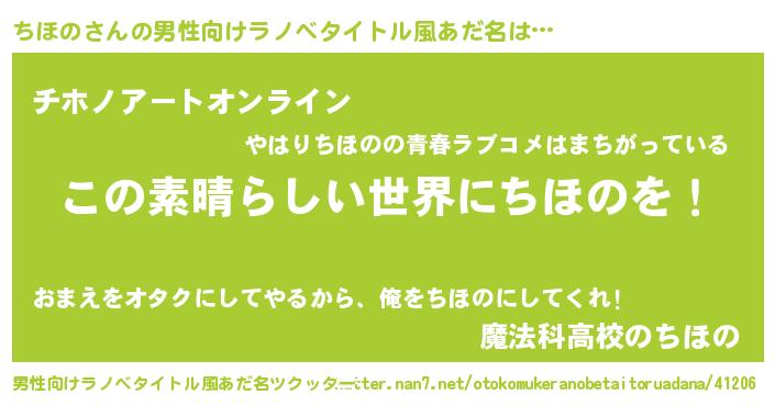 ちほのさんの男性向けラノベタイトル風あだ名をツクッター!