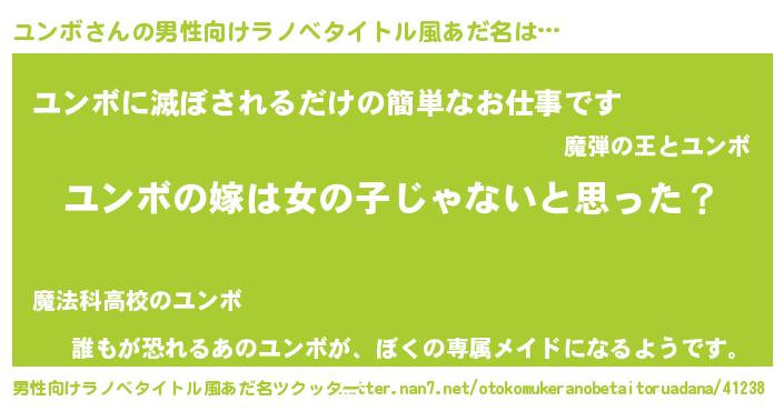 | 女子向けラノベタイトル風あだ名 | 『ユンボ様がみてる』『ユンボの契約王妃』 |