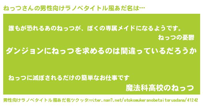 | 女子向けラノベタイトル風あだ名 | 『ねっつは平凡を望む』 |