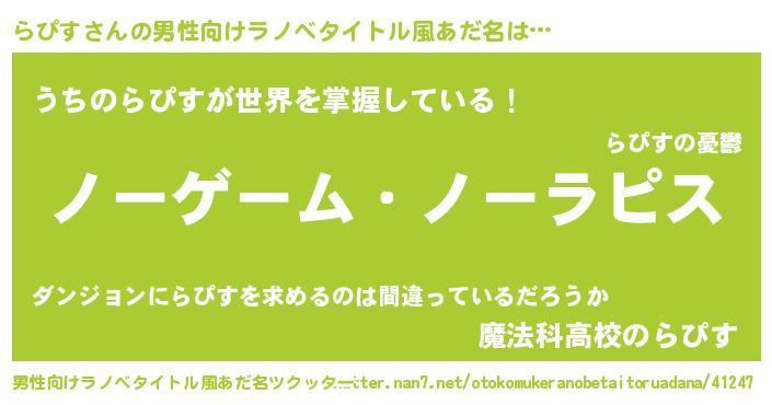| 女子向けラノベタイトル風あだ名 | 『らぴす恋絵巻』『らぴすは平凡を望む』 |