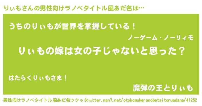 | 女子向けラノベタイトル風あだ名 | 『りぃも様がみてる』『りぃも恋絵巻』 |