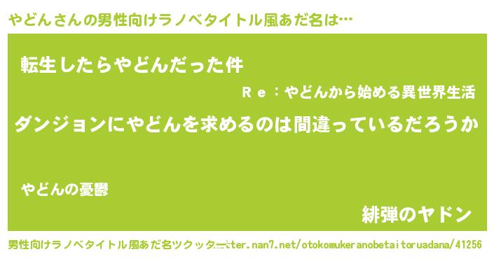 | 意味不明あだ名 | 『とにかく怪しいやどん』『自称やどん』 |