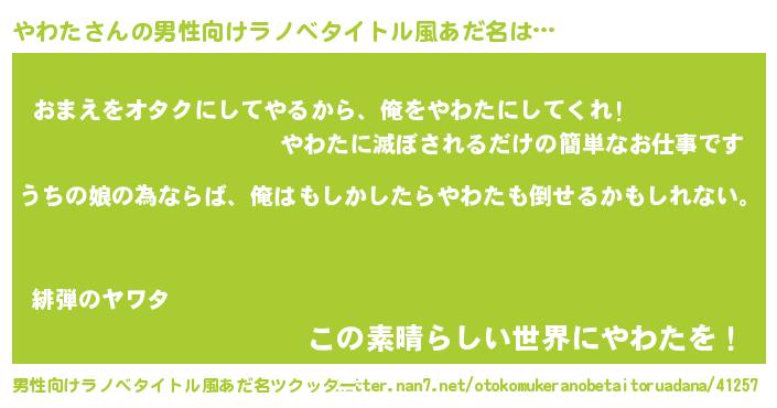 | 胡散臭い通販商品みたいなあだ名 | 『世界が平和になる高級そうな絵画…その名も「やわた」』 |