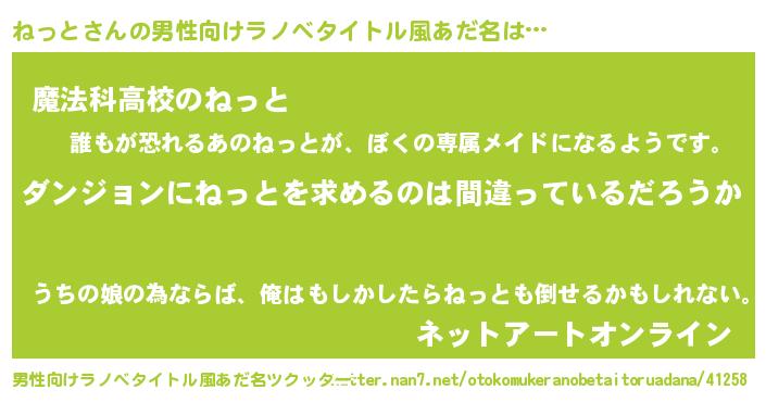 | 意味不明あだ名 | 『とにかく怪しいねっと』『自称ねっと』 |