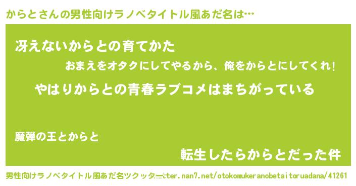 | 女子向けラノベタイトル風あだ名 | 『からとの雑貨屋さん』 |