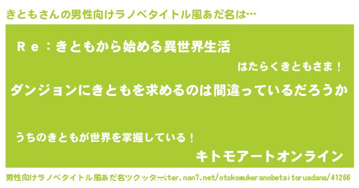 | 女子向けラノベタイトル風あだ名 | 『きともの卵を拾いまして』『闇のきとも』 |