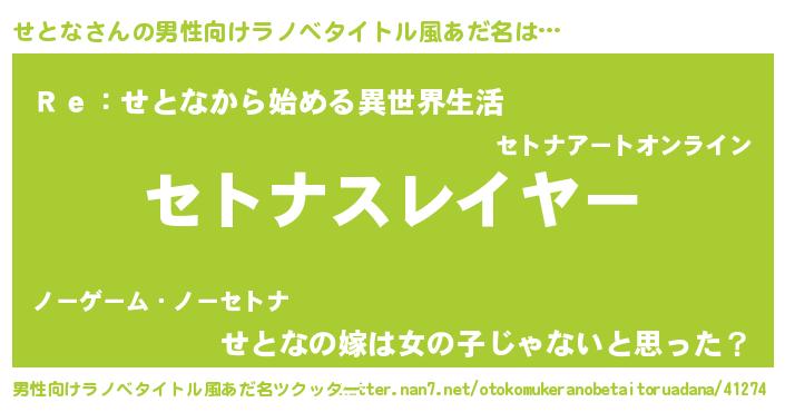 | 意味不明あだ名 | 『めかぶ科せとな属』『自称せとな』 |