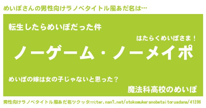 | 意味不明あだ名 | 『眠気覚ましガムめいぽ味』『自称めいぽ』 |
