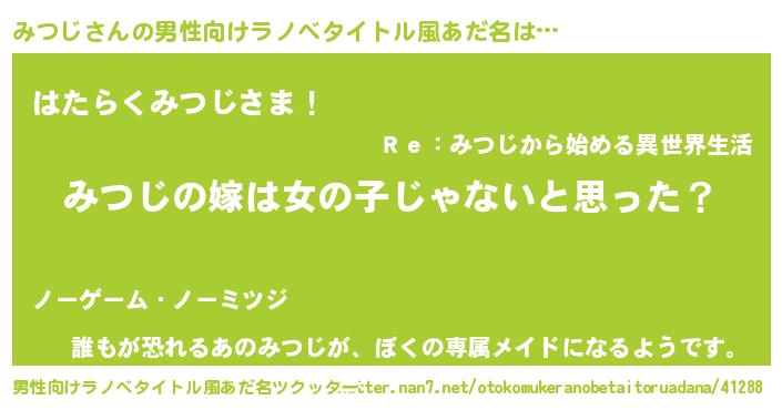 | 女子向けラノベタイトル風あだ名 | 『みつじ様がみてる』『闇のみつじ』 |