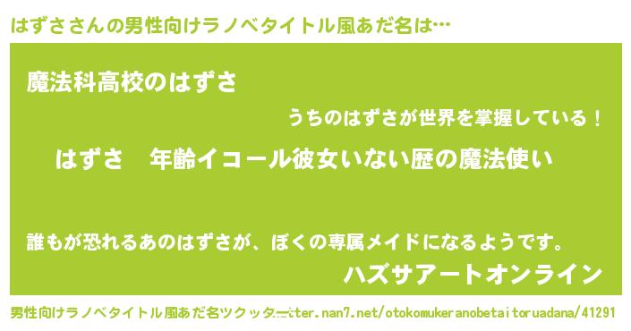 はずささんの男性向けラノベタイトル風あだ名をツクッター!