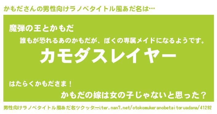 | ヒーロー風カッコイイあだ名 | 『仮面カモダー』『暗黒騎士カモ』 |