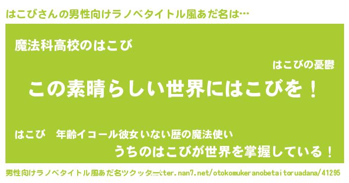 | 意味不明あだ名 | 『住所不定無職はこび(41歳)』『自称はこび』 |